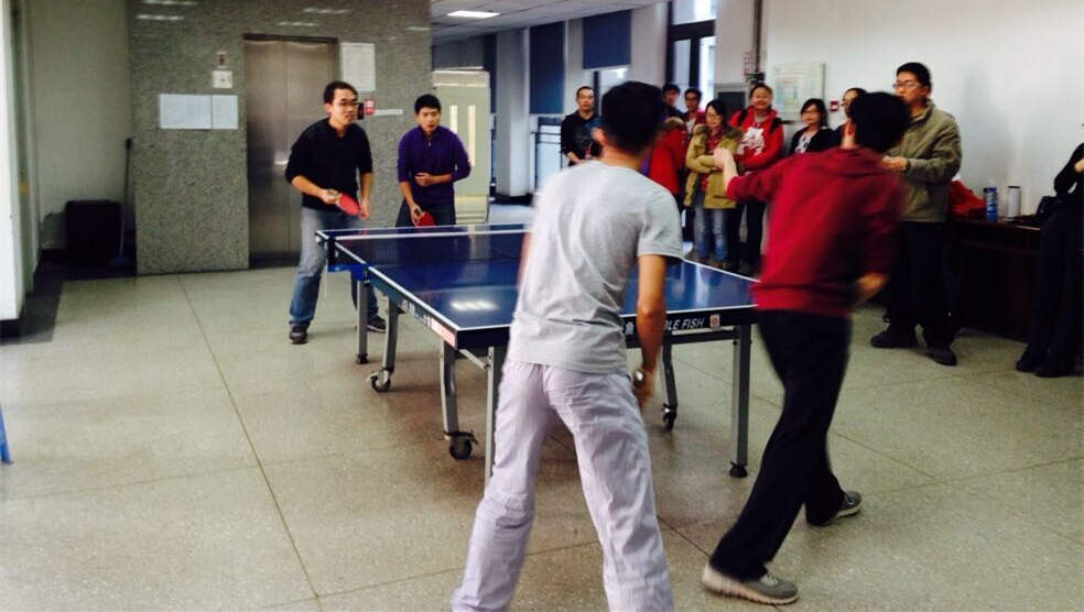 11月17日中午12:30,2014届生科院“院长杯”乒乓球团体赛小组赛开打。对阵形势是“公能队”VS“植物学小分队”。