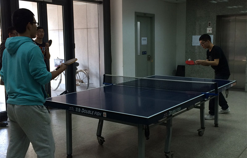 11月18日中午12:30,2014届生科院“院长杯”乒乓球团体赛小组赛的比赛继续进行。对阵形势是“godball”VS“A303”。