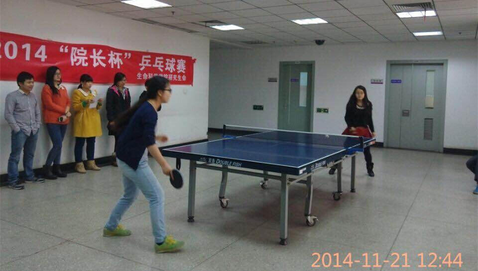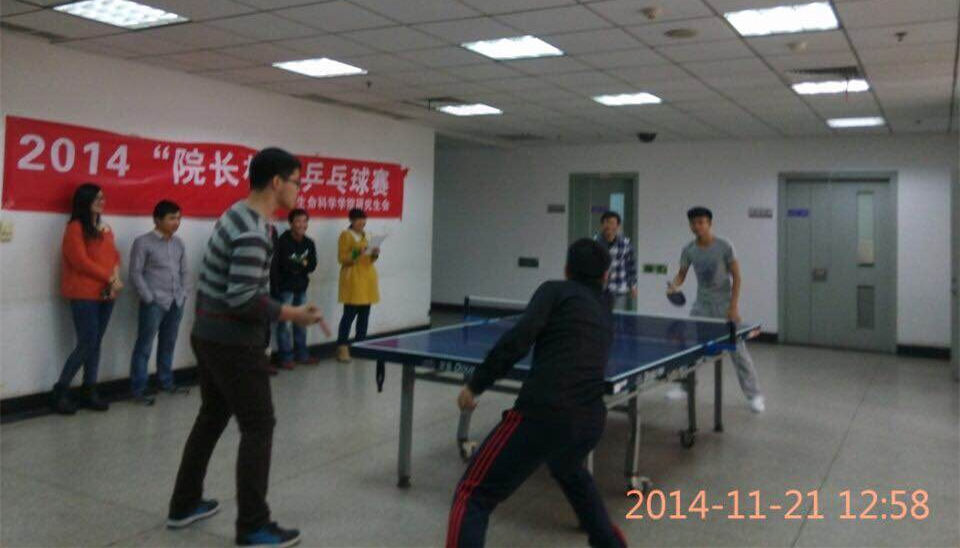 12月3日下午,2014年生命科学学院“院长杯”师生乒乓球决赛正式开赛,对阵双方是从小组赛和淘汰赛中脱颖而出的“院部队”和“植物学小分队”,最终,经过了五局激烈的角逐,“植物学小分队”摘得桂冠。参赛双方因其精彩表现赢得了现场观众的阵阵掌声。
