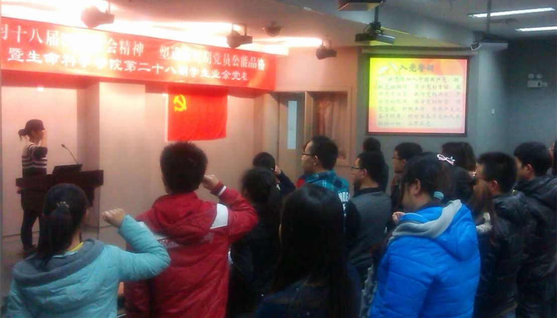 大会首先由党校校长王一涵进行本期党校工作总结汇报,随后由各小组分别针对“公能”辅学支持方案调研进行汇报,学员们的调研方法科学、全面,调研成果显著,对日后工作有一定的参考价值。在为优秀学员颁奖过后,由书记吴秀英进行讲话,她高度肯定了这次业余党校取得的创新性成果,同时也对在座各位学生党员提出了更高的希望与要求,鼓励学员再接再厉、不断坚持理论学习、团结群众。大会在全体学员庄重的入党誓言中落下帷幕。