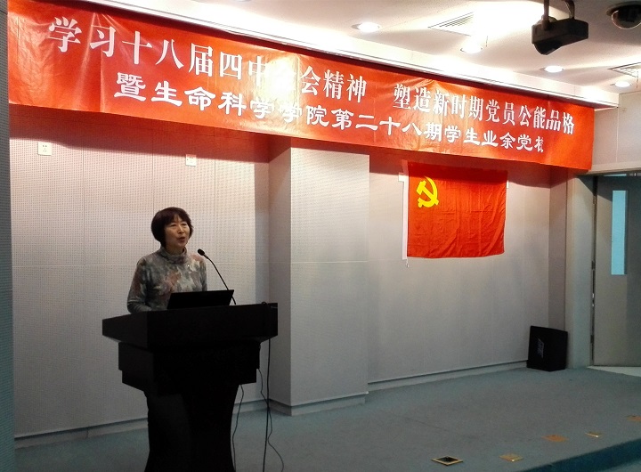 12月12日,“学习十八届四中全会精神 塑造新时期党员公能品格”暨生命科学学院第二十八期学生业余党校总结表彰大会在生物站报告厅顺利举行。党委书记吴秀英、党委副书记 副院长李营出席本次会议。