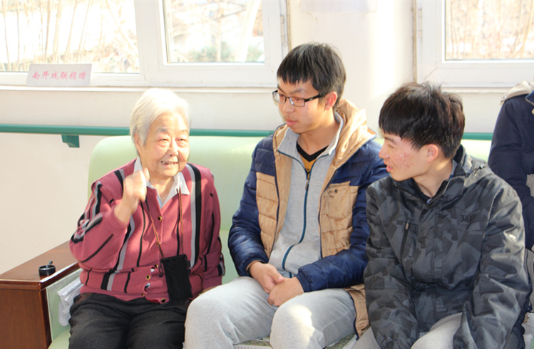 2014级的同学们分成两组,分别前往天津市宜童自闭症儿童康复中心和天津市望园老人院。同学们给康复中心的孩子们带去了糖果,给他们表演了事先排练好的小话剧,通过讲故事和话剧相结合的方式,向孩子们讲述了元宵节的起源。之后又带着孩子们进行了户外活动。在活动中,同学们了解到了关于自闭症的知识,亲身接触到了这些“折翼天使们”,也被他们的纯真深深感动。而另一组前往老人院的同学们,先帮助打扫了老人院的餐厅和活动室,之后在活动室里和老人们愉快地聊天。老人院的高奶奶高兴地说:“看到充满朝气的你们,我非常地激动!”