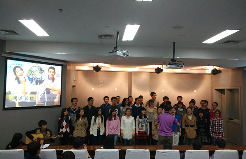 4月17日晚,天空即将被夜色笼罩,可是南开大学生命科学学院的报告厅内,火热的气氛仿佛可以染红半边苍穹。人头攒动,时而从各方传来练习中整齐而轻微的吟唱声。在七点整,全院师生翘首以盼的“五月的鲜花”班班唱比赛终于开幕。就业指导中心刘志,生命科学学院团委书记陈万胜老师,生命科学学院团委张宏思三位老师出席本次活动并担任评委。