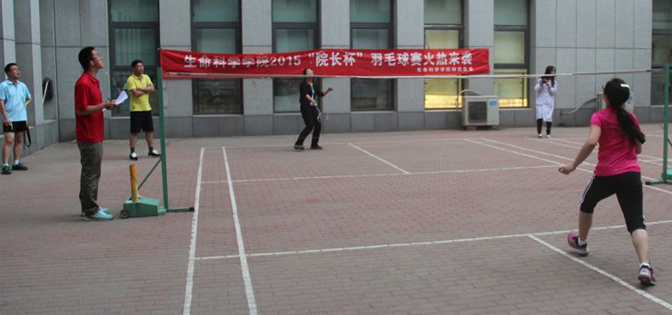 5月18日,2015年生科院“院长杯”羽毛球赛小组赛第六场准时在生物站开战,对阵形势是“行政队”VS“No Delay”。