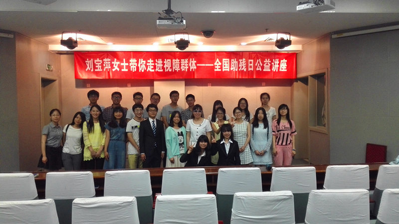 5月17日生命科学学院和文学院共同邀请到天津市盲人歌唱演员刘宝萍为学生进行全国助残日公益讲座。活动中刘宝萍女士带领志愿者走进了残障人士的生活,让大家进一步了解了残障人士,激发了他们的爱心与热情,真正做到把“助残”当做自己的责任。