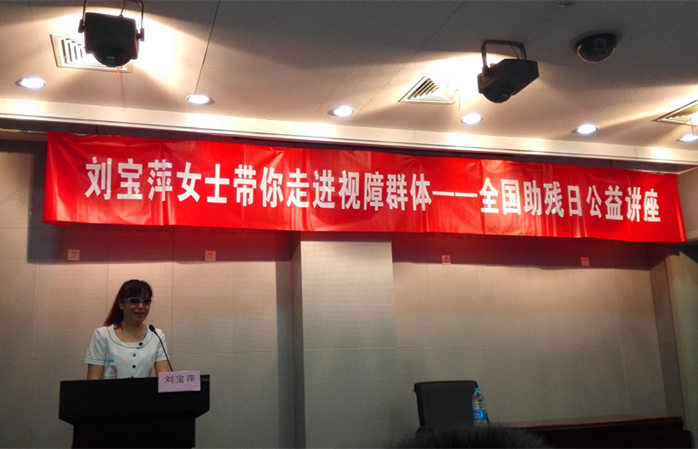 刘宝萍指出,大家在生活里与盲人的接触大多是属于见过面没说过话的第一层面,而这就是大家与盲人缺少交流所致,此时我们就应该反思自己,突破人文环境、物质和沟通三个障碍,真正做到理解。为了让大家更加了解残障人的生活,她讲述了自身成长的经历,正是永不放弃的毅力和坚持梦想的执着让她成为天津市唯一一名盲人本科生。也正是刘宝萍的经历和切身感受让她希望成为一个传播者,将“无障碍”的关怀传到全国,温暖和帮助更多的残障人士。