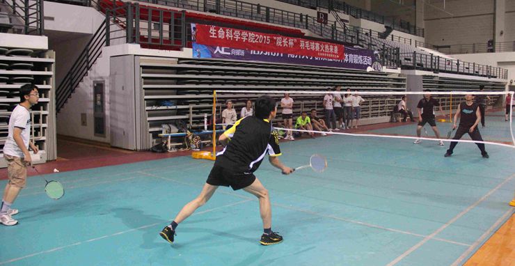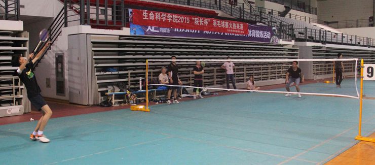 5月20日,2015年生科院“院长杯”羽毛球赛小组赛最后一场准时在体育馆开战,对阵形势是“共用电子队”VS“A303队”。