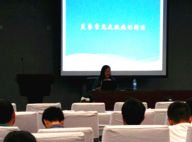 随后,兰晓敏老师为我们介绍了热痱湿疹、脂溢性皮炎、夏季皮炎、和日光性皮炎四种夏季易发的皮肤疾病,并普及了它们的预防措施。其中,兰老师特别强调了危险三角区发炎可能对脑部可能造成严重影响这一问题。