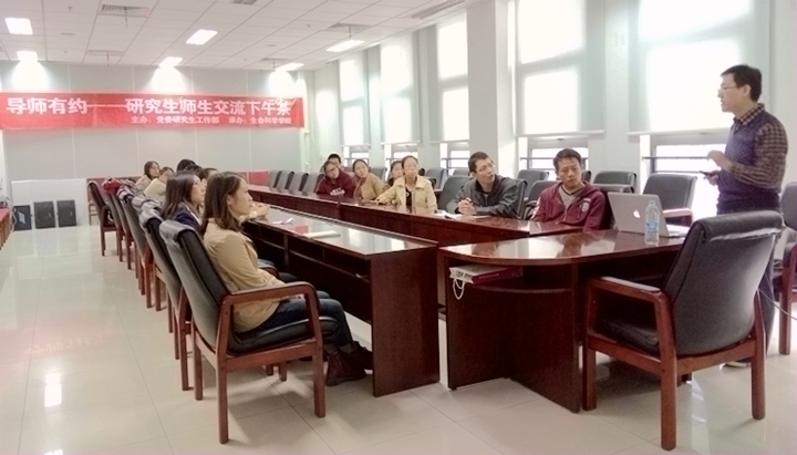 近日,由南开大学党委研工部主办、生命科学学院承办的“导师有约――研究生师生交流下午茶”活动在生物站一楼会议室成功举办。本次活动以“学术研究与职业规划”为主题,邀请到生命科学学院遗传学与细胞生物学系朱玉山副教授分享自己的经验和体会。