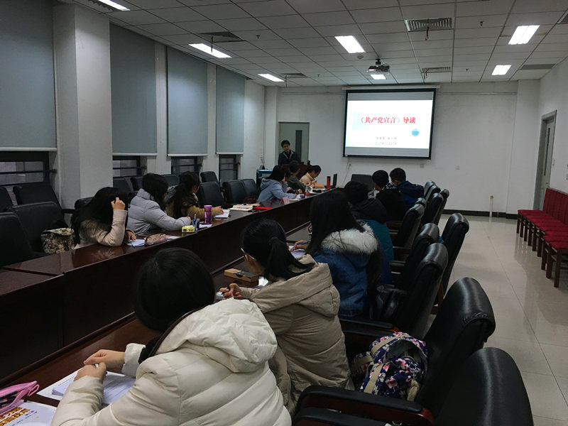 11月21日,暴风雪来临的前夕,寒风刺骨,但是生命科学学院生物站的会议室里,一群志同道合的青年马克思主义信仰者对《共产党宣言》的探讨却在热情洋溢的氛围中进行着。这正是生命科学学院2014-2015级本科生联合党支部的首次理论学习活动,本次活动邀请支部理论导师、南开大学团委副书记刘一博一同参与并予以亲切指导。