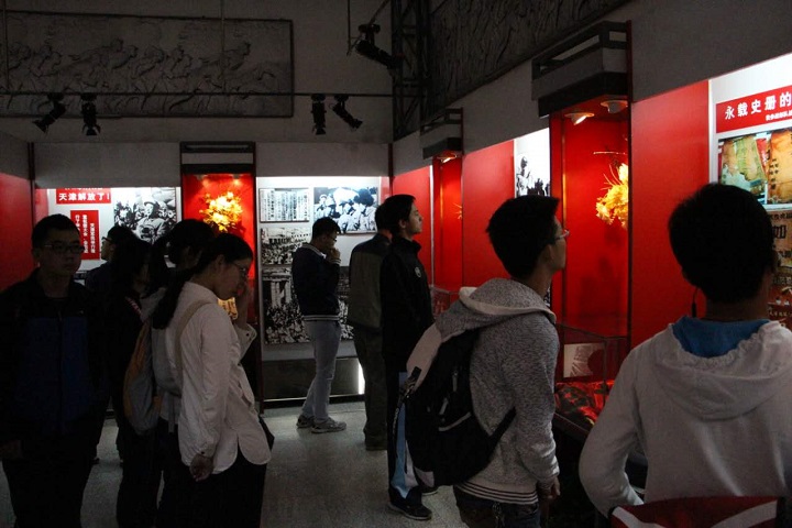 随后,干事们在工作人员的带领下进入烈士纪念馆参观。馆内的陈设物品和影像资料生动地还原了当年先烈们的奋斗历史。配合馆内电子讲解机的同步介绍,同学们表示了解了很多之前不熟悉的历史知识,丰富了自己的爱国热情。程曲汉在观后总结时说: “忘记等于背叛,虽然战争离我们已远,但是我们绝不能忘记。”