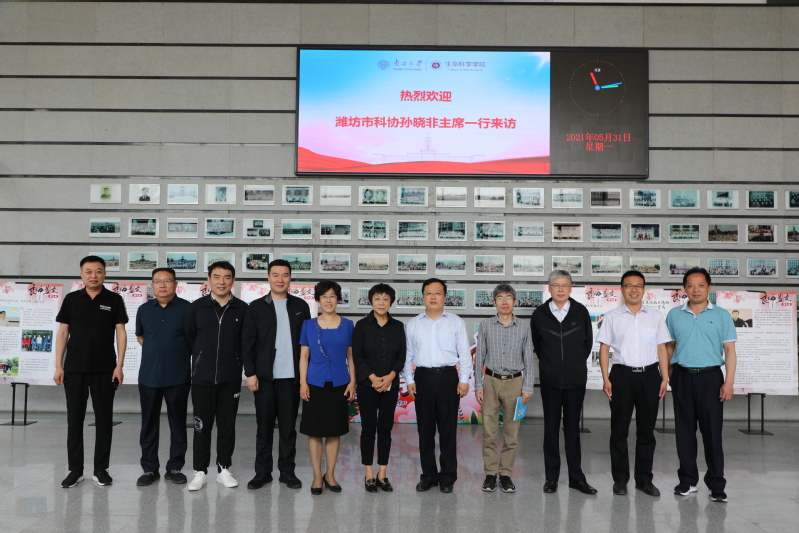 5月31日,潍坊市科协党组书记、主席孙晓非及高新区科技局党委书记马文泉等一行7人来我院访问交流。学院党委书记谢桂玲,副院长马挺、田在宁,合作项目负责人刘新奇,学院办公室、团委学生工作办公室相关人员等参加了交流会。