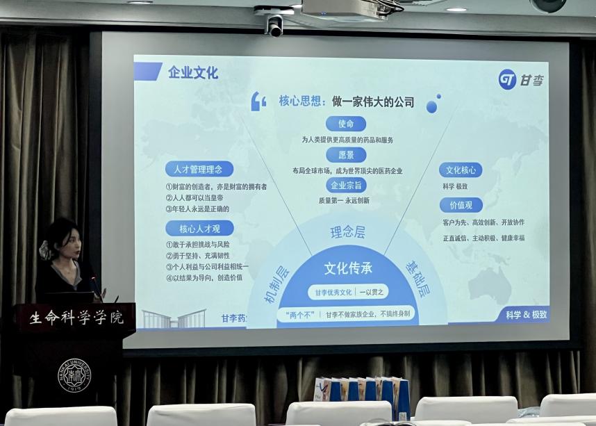 2025年10月16日,甘李药业来到南开大学生命科学学院生物站报告厅,为同学们带来一场干货满满的校园招聘宣讲会。