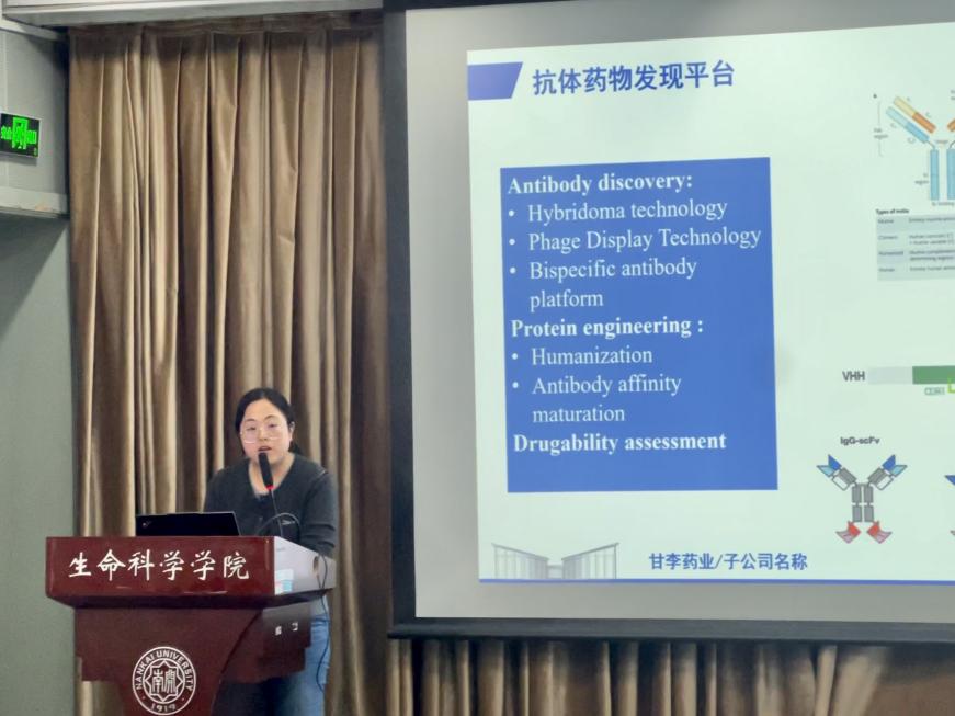 宣讲会特别邀请了已入职甘李的优秀校友代表重返校园进行分享。师姐结合自身在研发一线的实战经验,详细介绍了新药研发相关的具体工作内容,并分享在项目中的成长与心得,为同学提供了极具参考价值的一手信息。