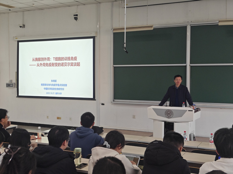10月27日,生命科学学院《研究生学术与职业素养》系列讲座开启第五讲。本次讲座由中国生物物理学、中国细胞生物学学会、南开大学生命科学学院联合主办,特邀中国科学院微生物研究所朱明昭研究员带来“从胸腺到外周:T细胞的训练免疫(从外周免疫耐受的诺贝尔奖谈起)”主题报告,为同学们呈现免疫学前沿的深度解析。