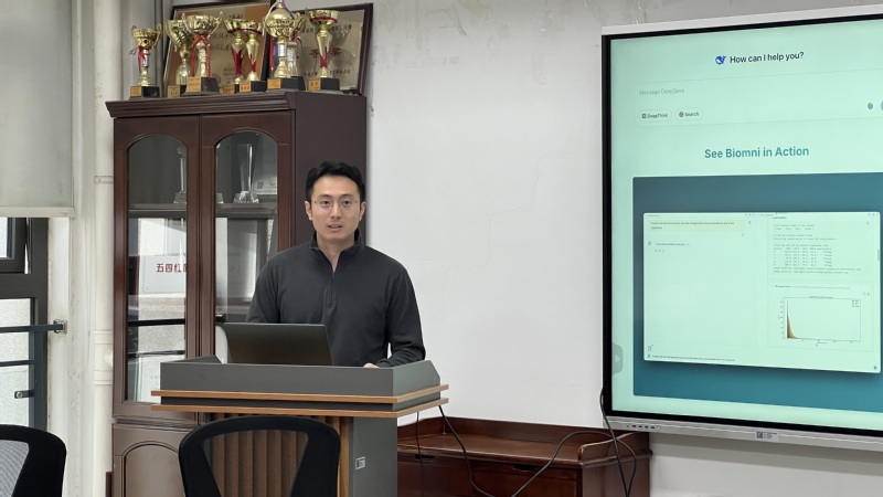 随后,会议进入专题报告环节。学院楼瀚涛副教授作了题为“人工智能算法、模型开发与教学创新的融合探索”的主旨报告。报告深入浅出地探讨了当前人工智能前沿技术如何与生命科学专业本科教学深度融合,为创新教学模式、提升教学效能提供了富有启发性的思路和可行的实践路径,引发了与会者的浓厚兴趣和热烈讨论。