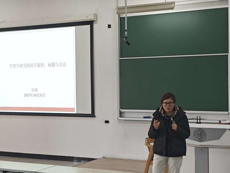 2025年10月31日,南开大学生命科学学院《研究生学术与职业素养》系列讲座迎来第六讲。本次讲座特邀南开大学商学院田莉教授带来“管理学研究的科学属性:问题与方法”主题报告,为同学们解析管理学研究的科学内涵与实践路径。