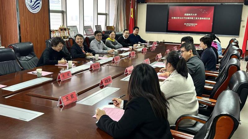 在共建座谈会上,双方围绕“党建引领业务发展”展开深度交流。生物化学与分子生物学系党支部书记王淑芳教授以“以党建活动促业务发展”为主题,系统介绍了支部在“党建+科研创新”“党建+人才培养”等方面的特色做法。唐山师范学院海洋学院院长蔡玉梅分享了该院党建与业务融合的实践经验。蔡玉梅表示,目前学院党员占比近90%,通过“双带头人”培育工程、“党建课题与科研项目联动申报”等机制,实现了党建与教学科研同频共振。