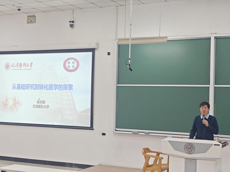 2025年11月7日,南开大学生命科学学院《研究生学术与职业素养》系列讲座迎来第七讲。本次讲座特邀天津医科大学基础医学院陈宇鹏教授带来“从基础研究到转化医学的探索”主题报告,为生命科学学院研究生带来精彩分享。