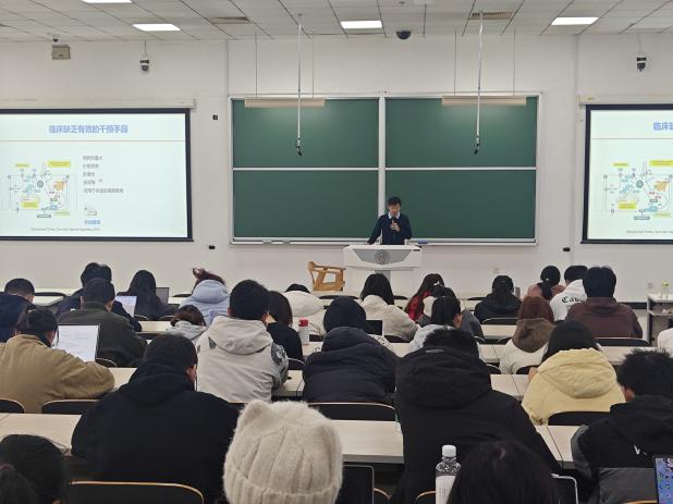 分享尾声,陈宇鹏教授以Salk研究所的寄语“Hope lies in dreams, in imagination, and in the courage of those who dare to make dreams into reality.”作结,讲述了Jonas Salk研发脊髓灰质炎疫苗时以身试药、无偿捐献专利的故事,勉励同学们以“解决临床真问题”为科研初心,善用合作拓展能力边界。既讲述了转化医学的前沿路径,更传递了“因长择路、以合聚力”的科研智慧,为青年学子的学术成长提供了鲜活指引。
