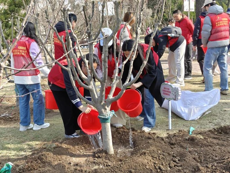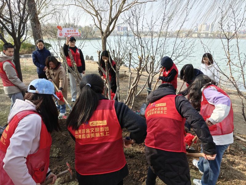 活动当天,阳光和煦。学院师生们与公园工作人员共同参与了“爱心志愿树”的种植环节。挥锹铲土、扶苗填坑、提水浇灌,大家分工协作,现场秩序井然。新植的树苗迎风挺立,象征着学院与水上公园的志愿合作根植沃土、枝繁叶茂,也寓意着雷锋精神的种子在青年心中生根发芽、代代相传。种植完毕后,师生共同为树苗浇水,表达对志愿服务事业薪火相继、生生不息的美好期许。