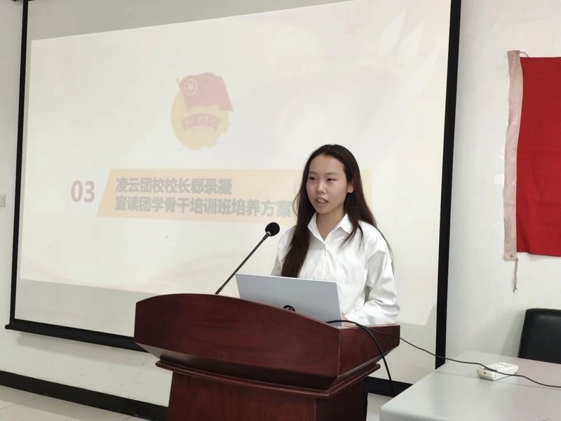 随后,凌云团校校长郄录凝宣读本期团学骨干培训班的培养方案,明确了本期团校的培养目标、学习安排与考核要求,并详细介绍了团校核心特色活动——创梦校园・精品活动策划大赛的整体安排。她提到,本次策划大赛将贯穿3月至5月,设置立项申报、中期答辩、结项答辩等全流程环节,期间还将配套多场理论与能力提升专题讲座,旨在以赛促学、以学促行,帮助学员在实操中掌握团学活动全流程工作方法,全面提升综合能力。