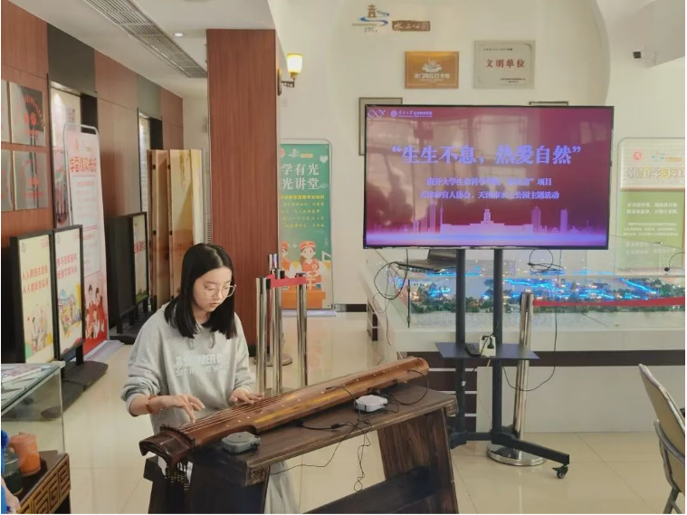 随后,文学院董晏鸣同学带来古琴独奏《流水》,琴声悠远,如清泉流淌,在春日暖阳下为现场营造出宁静而温暖的氛围,让在场的孩子们与志愿者们在悠扬的弦音中感受传统文化的魅力与志愿服务的温情。