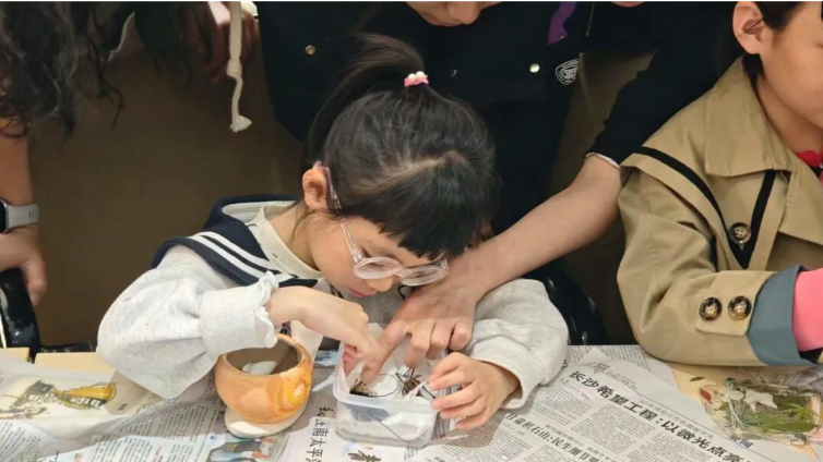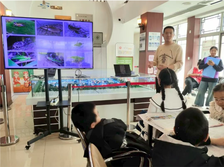 昆虫鸣叫科普环节,张北辰同学以生动的语言描述以及播放蟋蟀、蝈蝈等多种昆虫的鸣叫声,将孩子们带入一个充满奇妙声响的自然世界。草丛间的低语、枝头上的吟唱,那些微小生命的“歌声”在孩子们耳畔流淌,让他们在聆听中感受春天的勃勃生机。