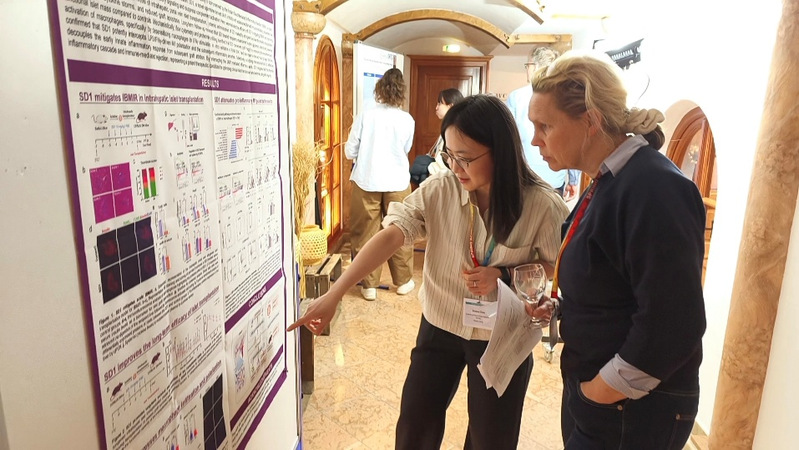 在颇具特色的一分钟自我介绍环节中,来自中、德、瑞、日等国的63位青年学者同台交流。陈筱素博士向国际同行介绍了我院及免疫学研究所在免疫学领域的最新研究进展,展现了南开青年学者的国际视野与科研风采。在壁报展示环节,她就我院自主研发的免疫抑制药物在移植免疫领域的应用与现场专家进行了深度对话,获得了宝贵的学术反馈。